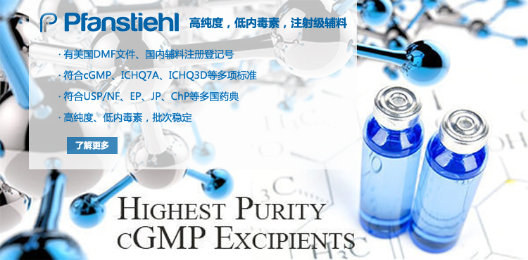 “熱烈祝賀Pfanstiehl的注射級甘氨酸Glycine(G-140)喜獲CDE登記號F20250000403, 這是Pfanstiehl產品獲得的第18個CDE登記號!”甘氨酸在醫藥輔料制劑中應用廣泛,, 可作為緩沖劑,增溶劑,穩定劑等,具有諸多優勢。Pfanstiehl秉承一貫高品質理念,為滿足全球生物制藥行業對于高品質甘氨酸的需求,隆重推出的注射級甘氨酸Glycine (G-140), 具有超高純度,超低內毒素,超低金屬殘留的特點,單獨檢測29種金屬離子,并且新增DNA,RNA,DNA酶,RNA酶和脂肪酶,亞硝酸鹽等多項質量指標的檢測,符合多國藥典規定(USP, EP, BP, JPE, ChP),可用于生物治療性藥物和疫苗的生產。產品信息:· 產品名稱:Glycine, High Purity, Low Endotoxin, Low Metals, USP, EP, BP, JPE, ChP (G-140)· 中文名稱:甘氨酸· 分子式:C2H5NO2· 分子量:75.07 g / mol· CAS號:56-40-6· 產品貨號:G-140產品特點: · 超高純度,超低內毒素,超低微生物含量,超低金屬雜質殘留· 質量指標新增DNA,RNA,DNA酶,RNA酶,脂肪酶和亞硝酸鹽檢測· 符合多國藥典:USP, EP, BP, JPE, ChP· 符合ICH Q3D標準· 符合GMP標準· 已獲DMF和CDE登記號 產品應用:· 緩沖劑· 穩定劑· 增溶劑如果您對Pfanstiehl注射級別Glycine G-140感興趣,歡迎聯系Pfanstiehl 中國區代理商北京西美杰科技有限公司獲得如下詳細的產品概況說明文件和測試樣品。Pfanstiehl Inc.最新產品系列如下,歡迎聯系北京西美杰科技有限公司獲取100g裝免費樣品。北京西美杰科技有限公司為Pfanstiehl中國代理,為客戶提供完善的技術支持與售后服務。歡迎撥打西美杰客服電話400-050-4006或者登陸網站www_xmjsci_com.wed112.com了解更多信息。 更多>